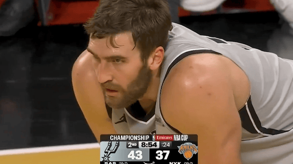 克林根半场出战12分钟,罚球2中1得到1分8板2助攻1抢断2帽