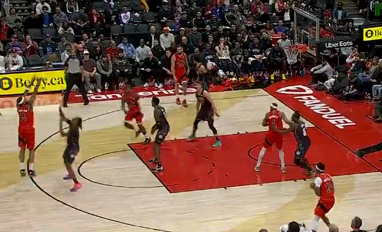 英格拉姆三分投进,猛龙打出一波30-13反超活塞并领先两位数