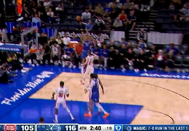 卡特三分坚决出手再中,魔术第三节领先活塞至21分