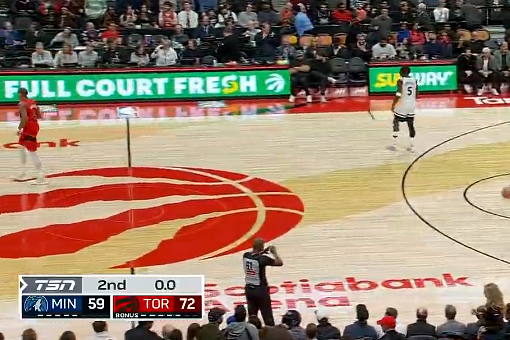 半场:森林狼以59-72落后猛龙,猛龙全队五人得分已上双