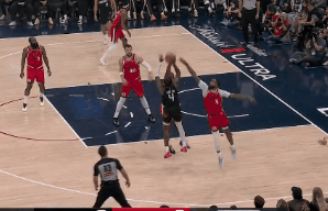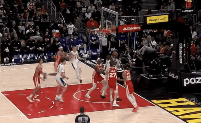 杰伦-格林突破,迎着祖巴茨强攻上篮打进2+1砍下22分