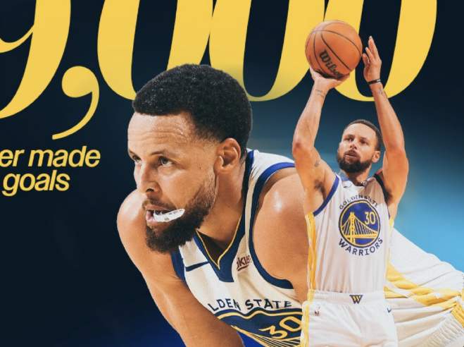 勇士官方:库里生涯常规赛总进球数突破9000记,历史第26位