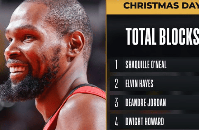 NBA圣诞大战历史盖帽榜:杜兰特并列第五,詹姆斯升至第八