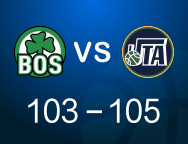 [赛后]爵士105-103凯尔特人,乔治31分5板4助,布朗36分4助2断