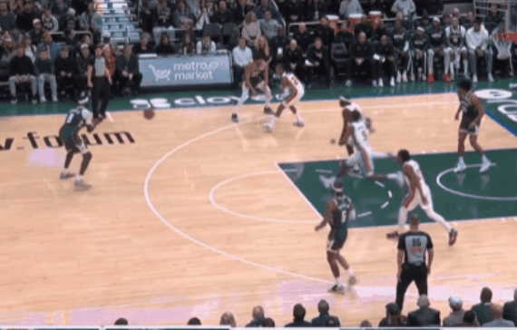 AJ-格林借掩护顶投三分再中,雄鹿将分差缩小至18分