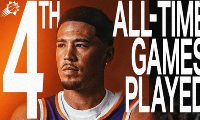 太阳官方:第686场比赛,恭喜布克位列队史出场次数第四位