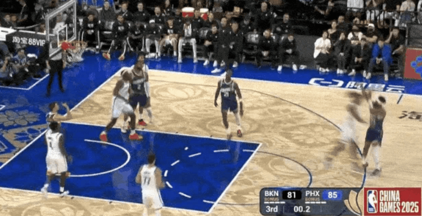 篮网最后时刻暂停,镜头给到场边的曾凡博