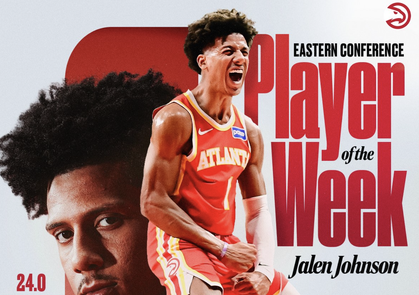 很多当中的第一个!老鹰官方祝贺杰伦-约翰逊当选东部周最佳
