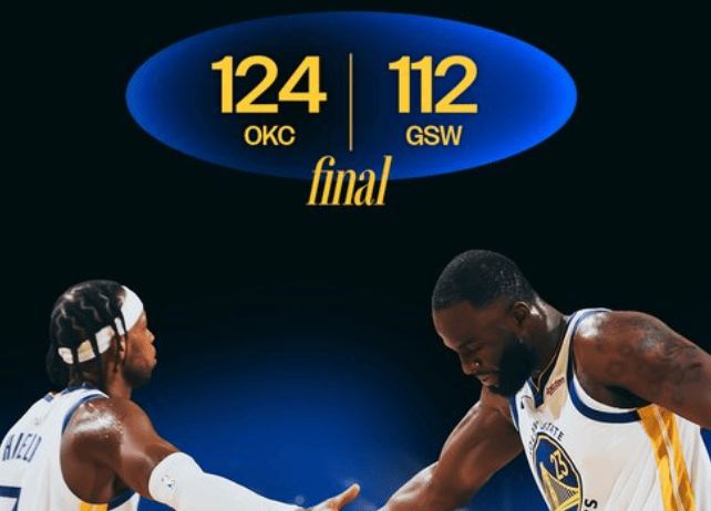 杜兰特击地妙传阿门-汤普森,后者接球起飞双手隔扣