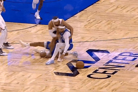 波蒂斯进攻中与坎宁安发生身体碰撞,随后痛苦倒地久久不起