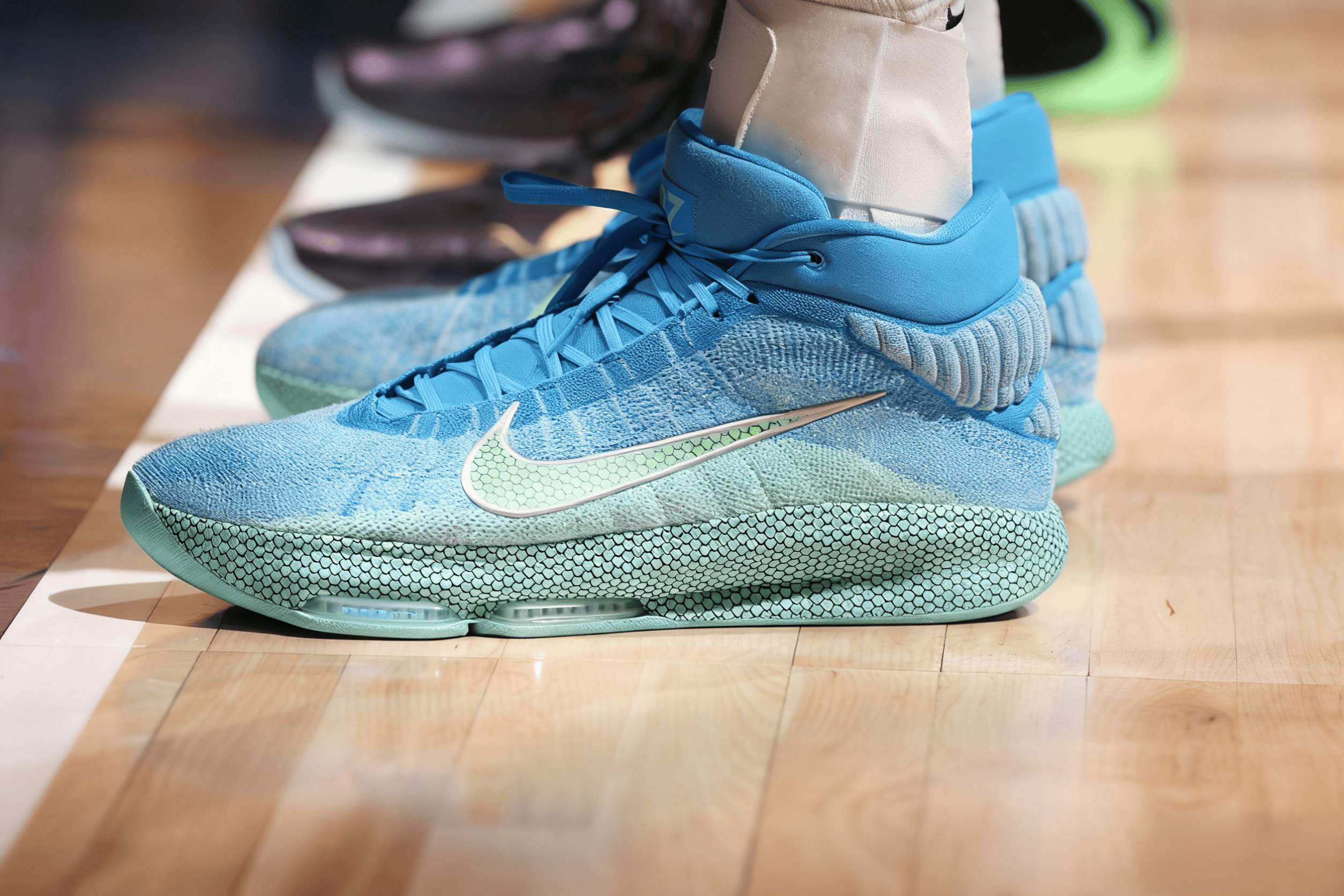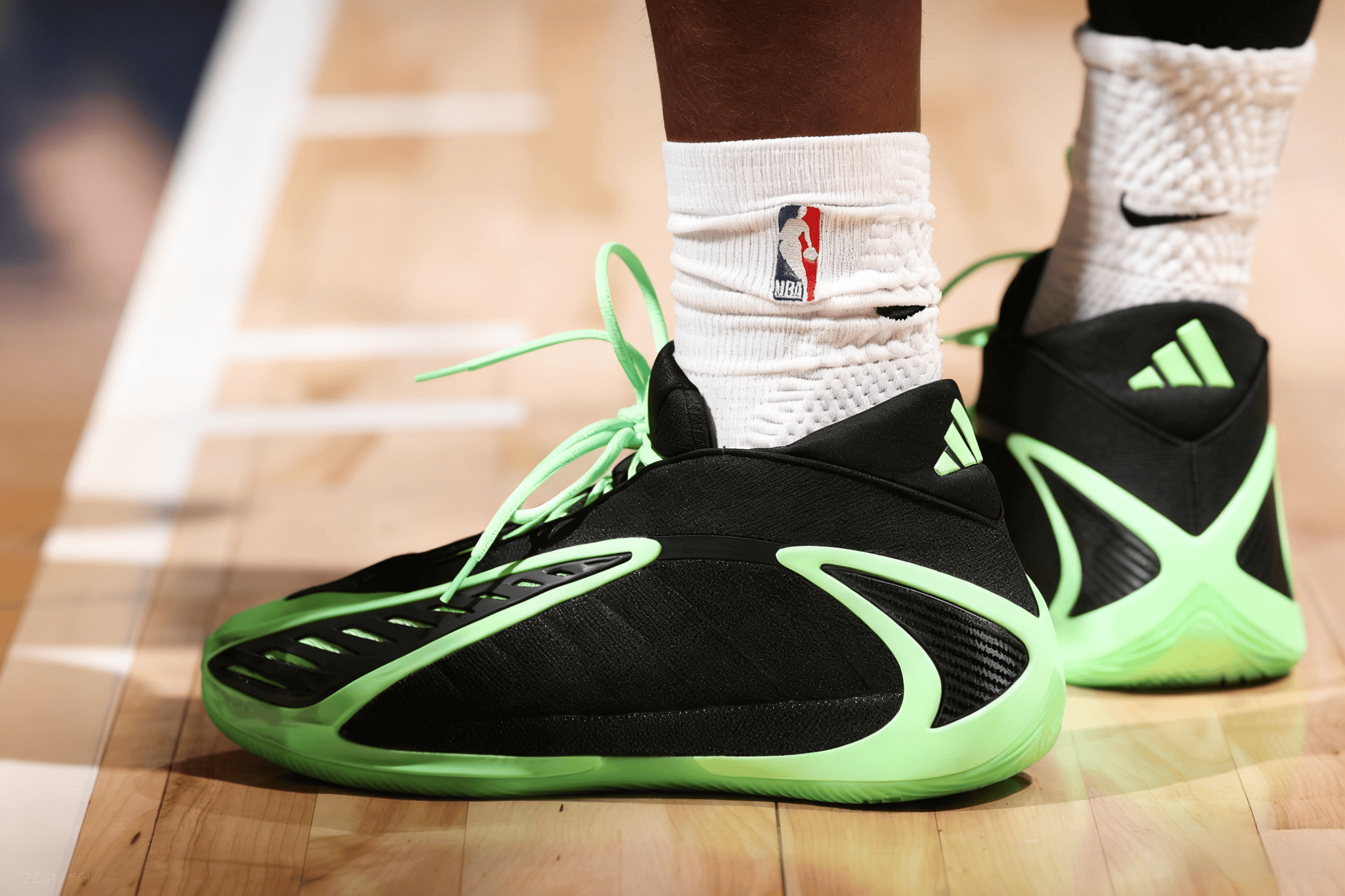 手感不佳!爱德华兹穿着黑绿森林狼配色AE2,得到18分