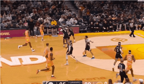 精妙配合!SGA杀入内线背身回传切特,后者高高跃起暴力灌框