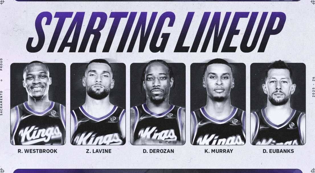 国王今日首发:威少、拉文、德罗赞、默里和尤班克斯