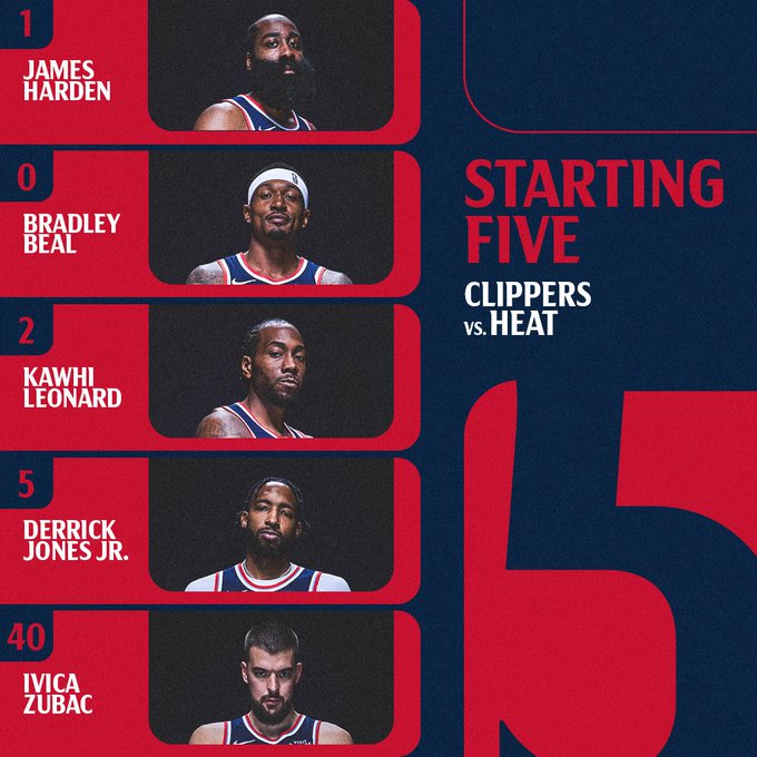快船首发:哈登、比尔、伦纳德、小琼斯、祖巴茨