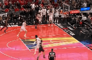 贾巴里-史密斯底角高难度三分强投命中,火箭落后1分剩5.5秒