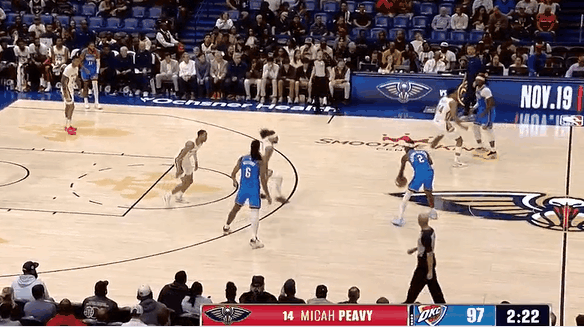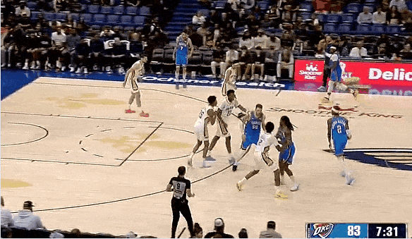 亚历山大持球命中本场第一记三分,雷霆重新领先到20分