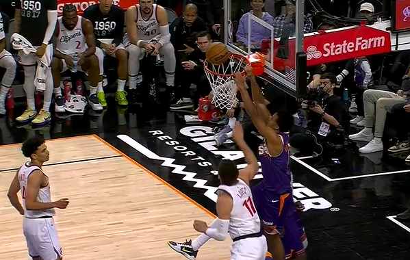 伊戈达罗空中拉框扣进,快船挑战后裁判吹罚前者进攻干扰球