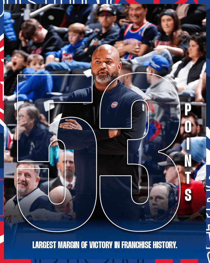 活塞官方晒53分大胜海报:以载入史册的方式,拿下一场胜利