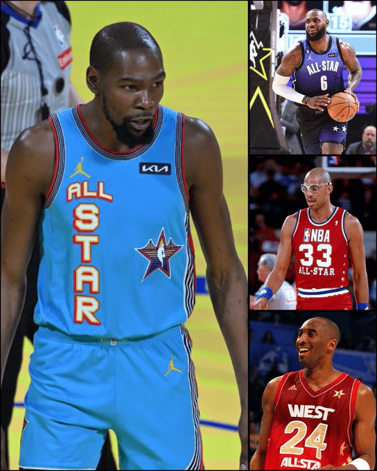 历史入选全明星次数榜:詹姆斯22次第一,杜兰特16次第四