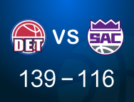 [赛后]国王116-139活塞,萨博尼斯12分7板8助,坎宁安29分5板11助