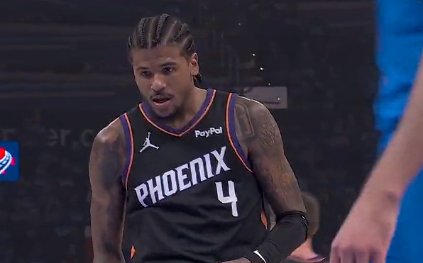阿夫迪亚突破落地时踩到罗威,随后返回替补席进行检查