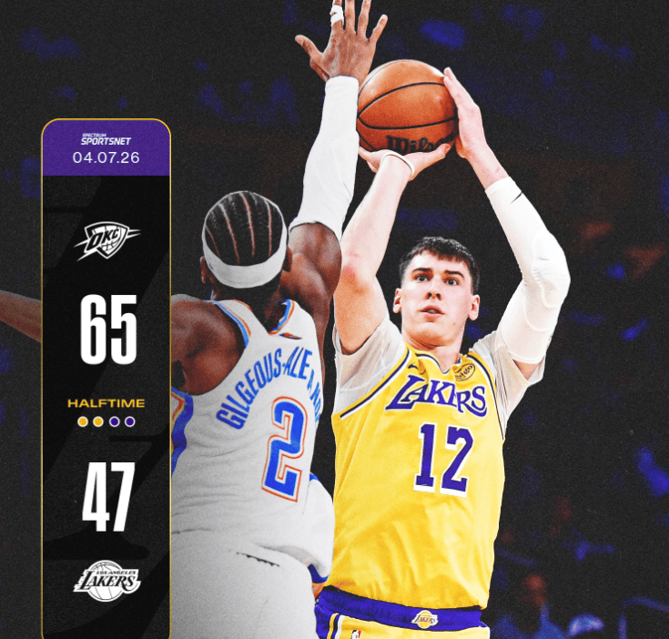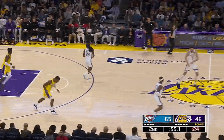 雷霆轰出23-5领先18分,湖人7分半里12中2、罚球4中1得到5分