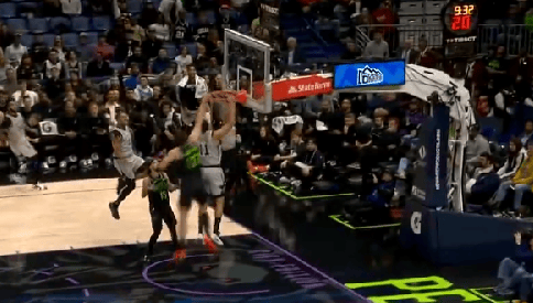 瓦兰抢下篮板迎着两人双手暴扣,掘金领先到两位数分差
