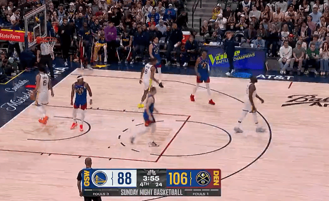 掘金连续快攻打出7-0,末节还剩4分钟领先勇士18分