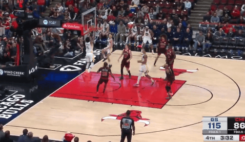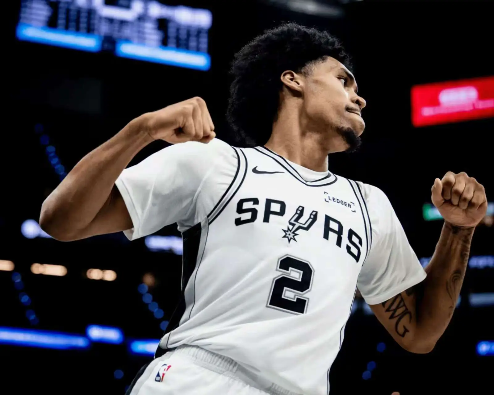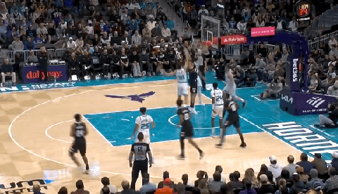 杰克逊径直杀入禁区迎着杨瀚森长臂防守,上篮打板命中2分