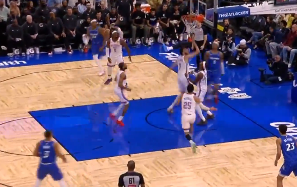 班凯罗上篮打进得到21分,魔术打出一波31-8反超并领先4分