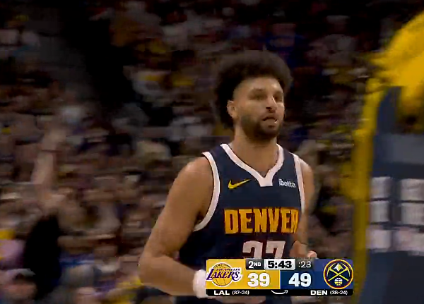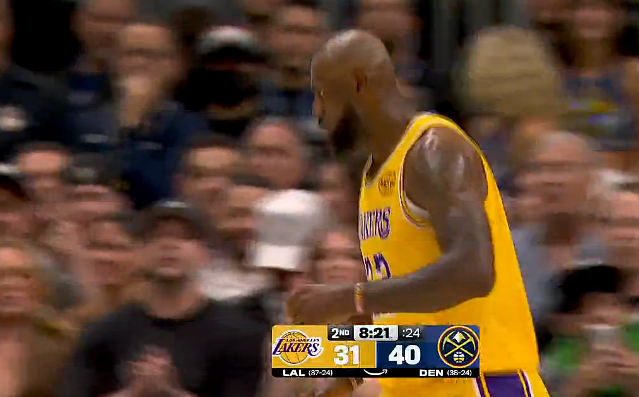 詹姆斯快攻反篮打进连拿4分,湖人暂停回来一波6-0打停掘金