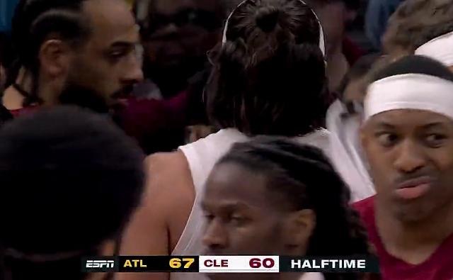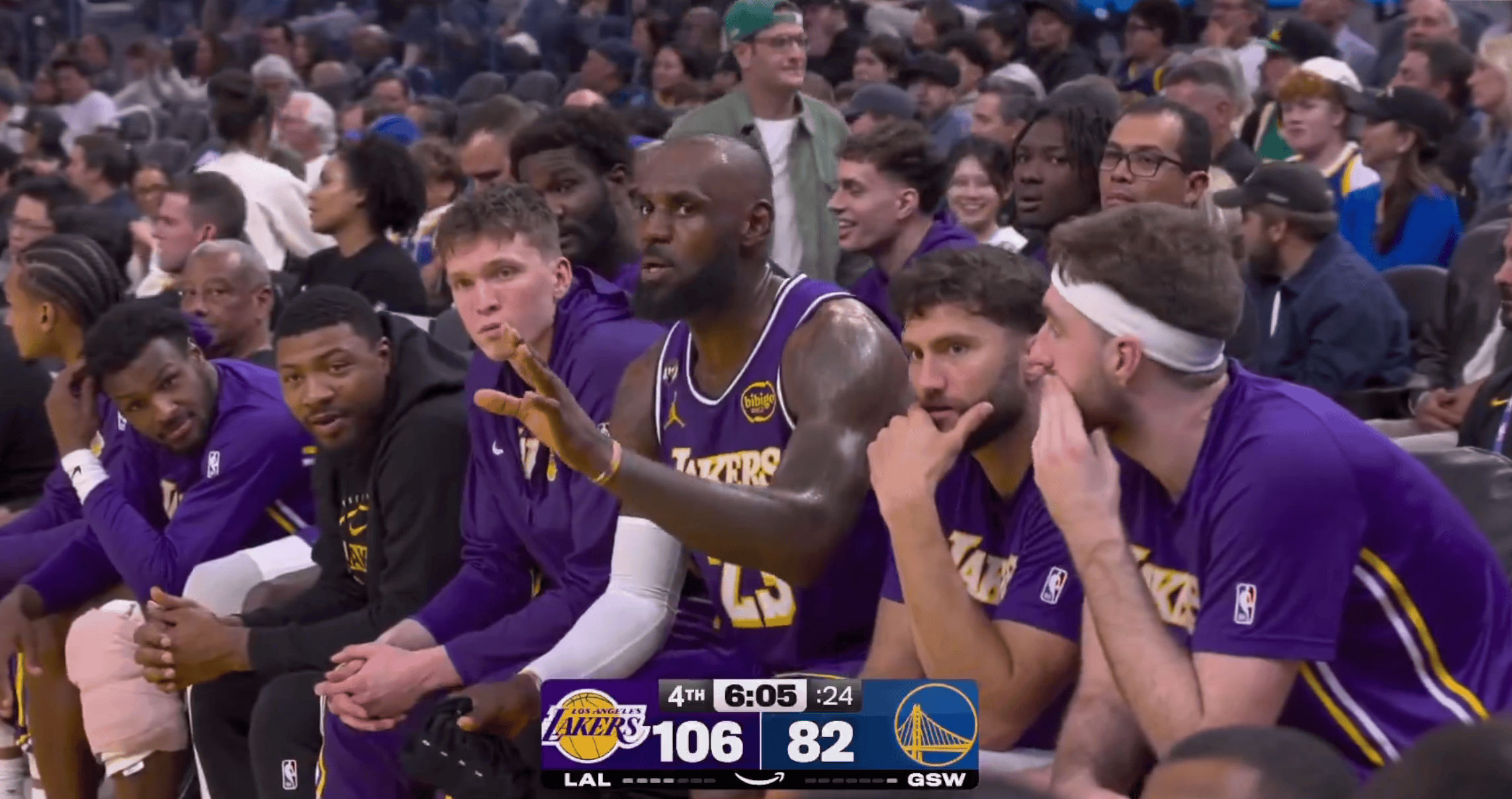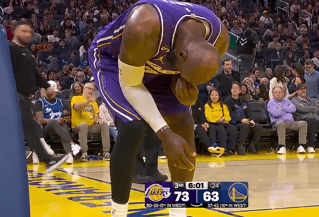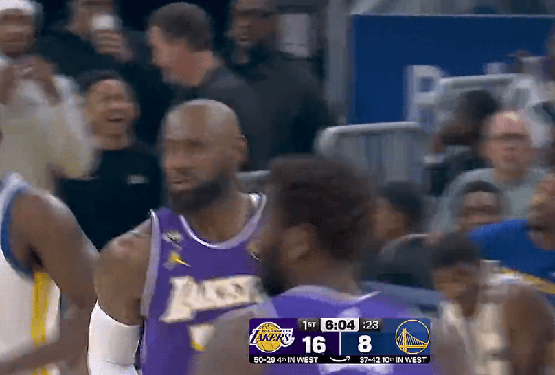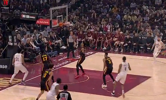 詹姆斯追身钉板大帽斯潘塞,落地后捂着右手表情痛苦下场