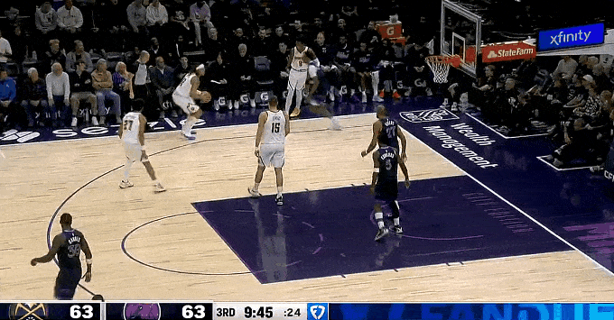 戈贝尔抢下前场板双手放空篮不进,约基奇禁区抛投打进反超