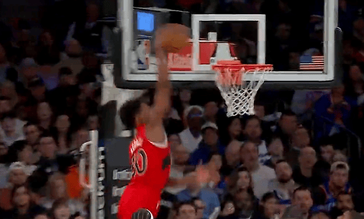 兰德尔全场砍下22分6篮板12助攻1抢断,正负值高达+30