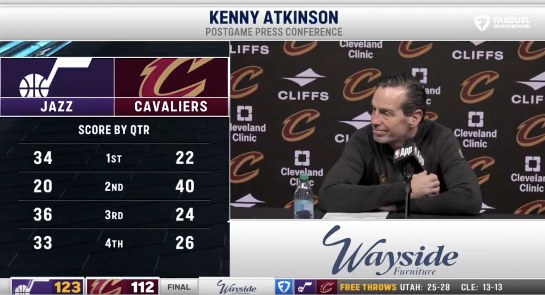 阿特金森谈失利:我们上场轰下146分有点飘了,得好好反省下