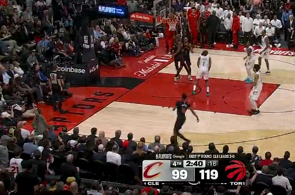 巴雷特末节16分已经砍下33分,猛龙还剩3分钟领先骑士22分