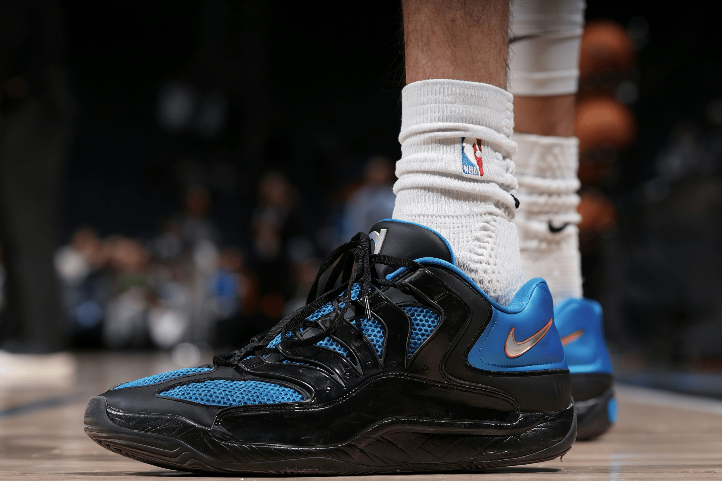 霍姆格伦穿着雷霆配色KD18,得到15分5篮板2助攻3盖帽