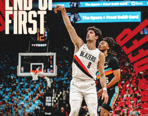 凯尔登首节命中压哨三分,马刺首战111:98击败开拓者!
