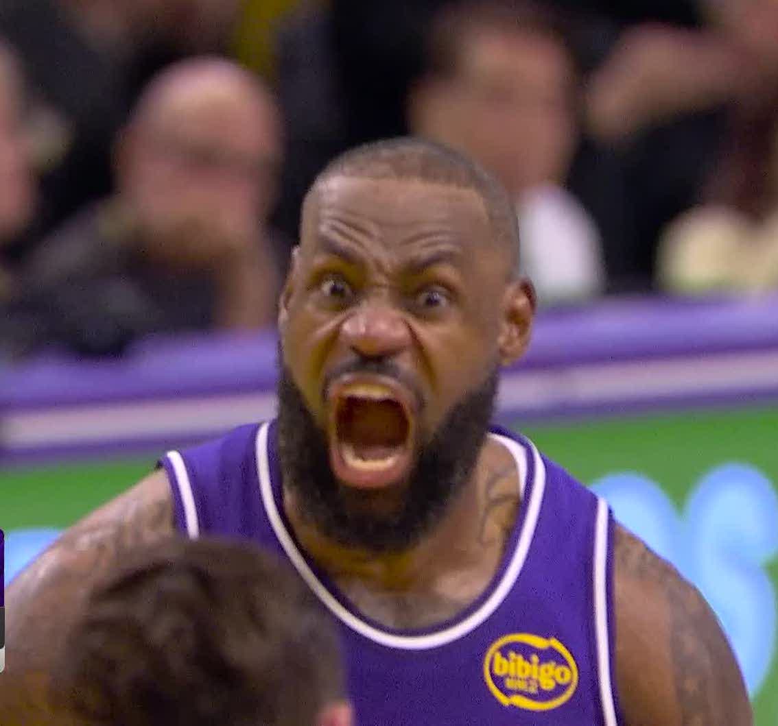 美媒晒詹姆斯战斧隔扣后面向科内特怒吼庆祝的表情包