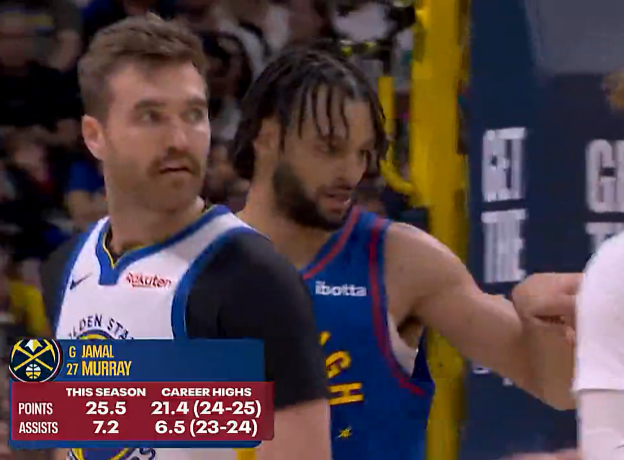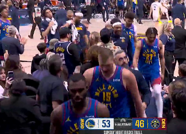 勇士半场53-46领先掘金,波尔津吉斯14分&约基奇15分