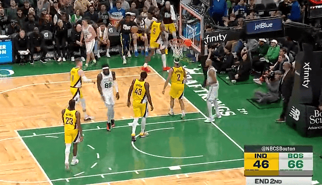 半场:凯尔特人66-46步行者,杰伦-布朗17分西亚卡姆16分