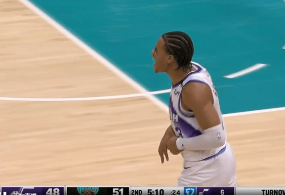莫兰特转身摆脱防守上空篮打板过桥不沾框,随后无奈抱头