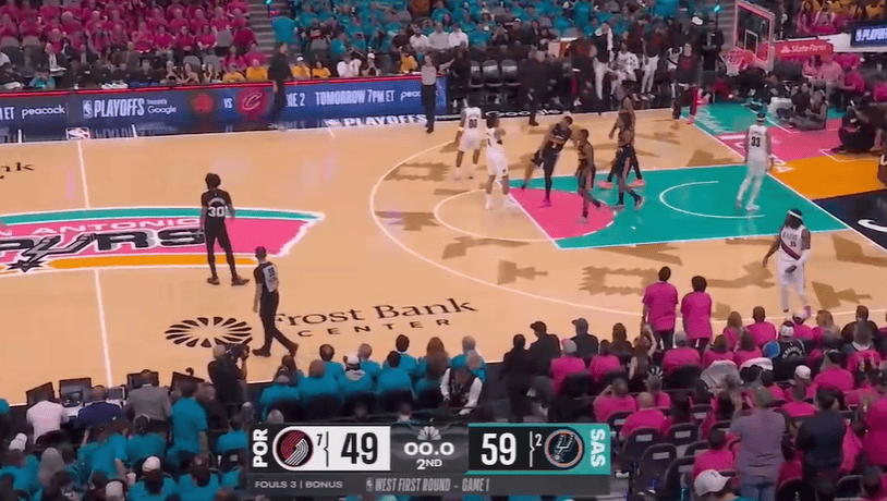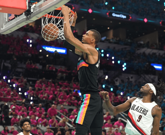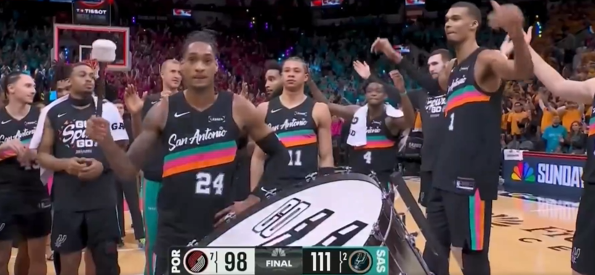 文班空接暴扣砍下35分,马刺剩余三分钟领先开拓者13分