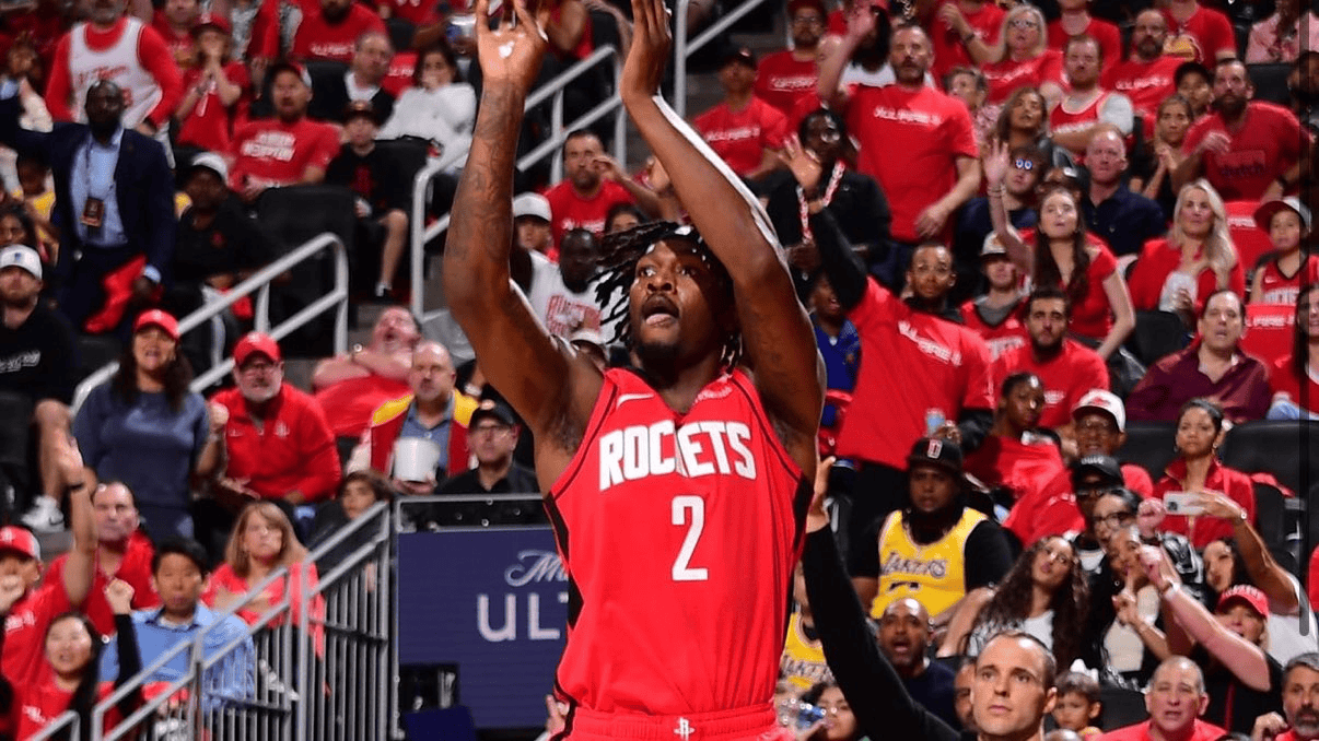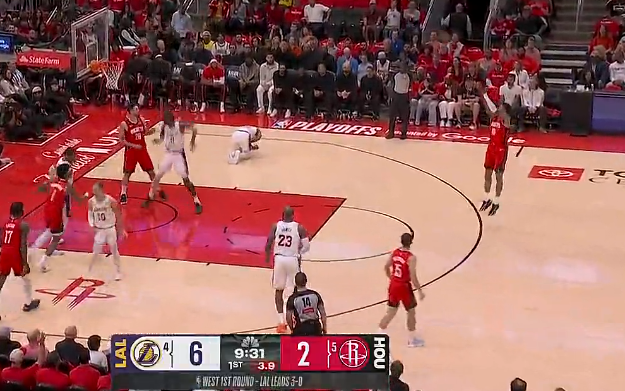 詹姆斯抢断后又投进三分,湖人30秒落后6分追平火箭进入加时