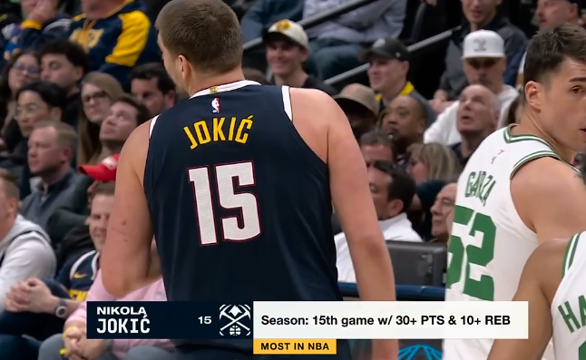 贝恩近12场以75%真实投篮命中率场均25+,约基奇后首人