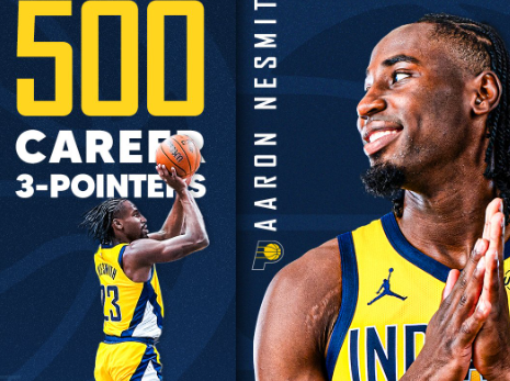 里程碑!步行者官方:祝贺内史密斯职业生涯投进第500记三分