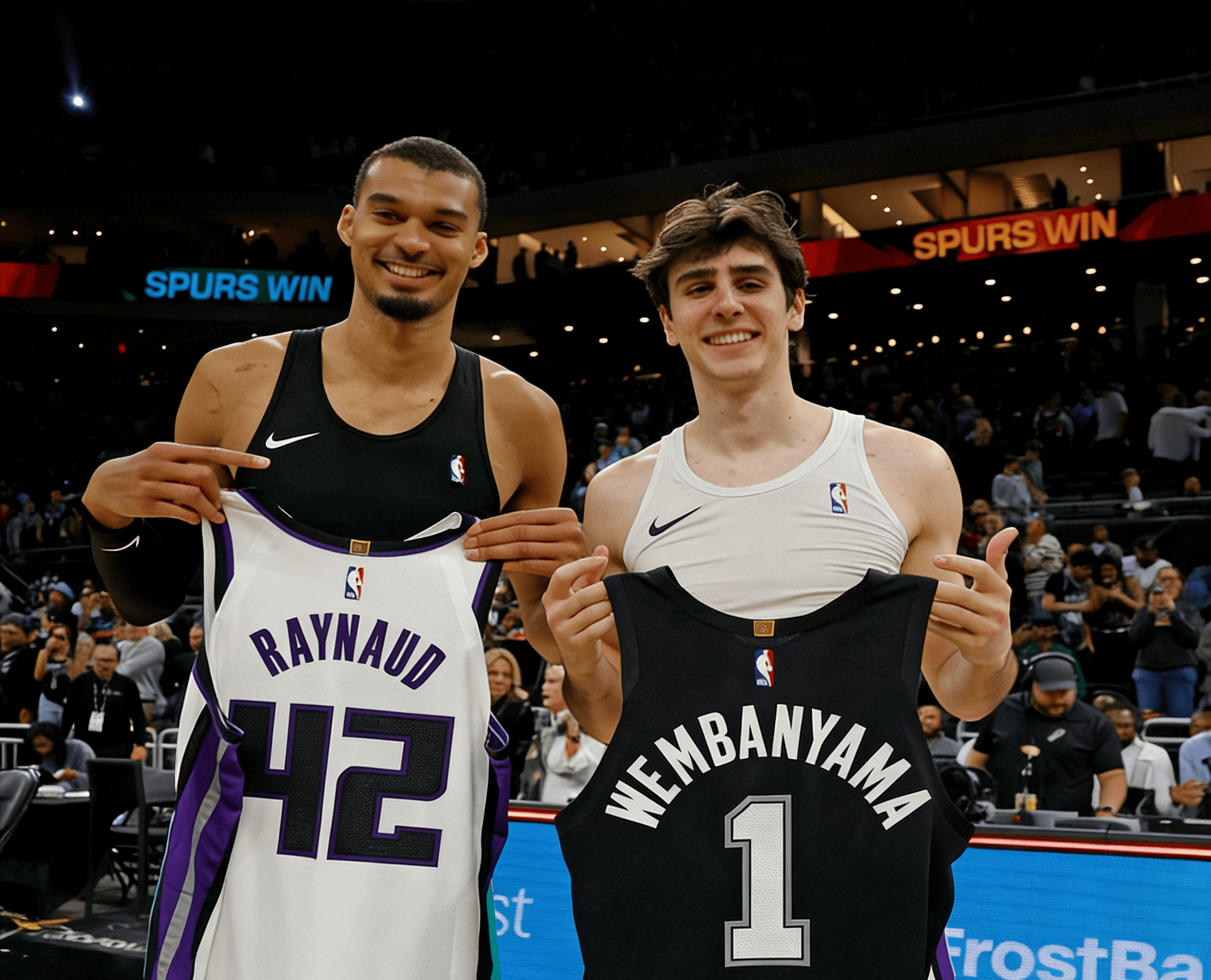 法国兄弟!文班亚马今日赛后与雷诺互换球衣