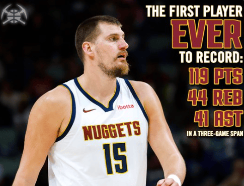 掘金官方:约基奇是首位3场比赛中得到119分44板41助的球员