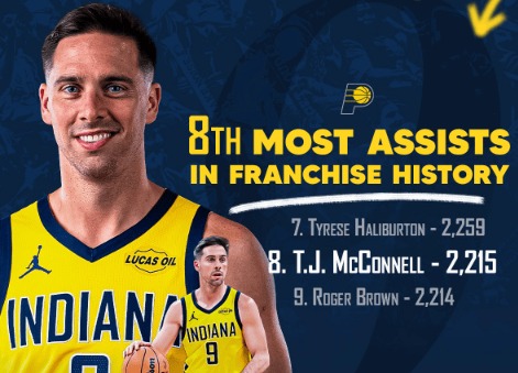 步行者官方:祝贺TJ-麦康奈尔荣升队史助攻榜第八名