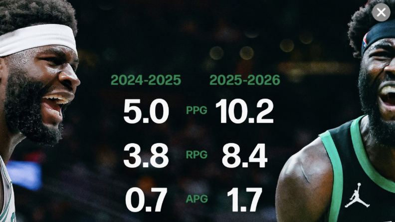 进步迅猛!凯尔特人官媒晒克塔数据对比照:数据自有说服力
